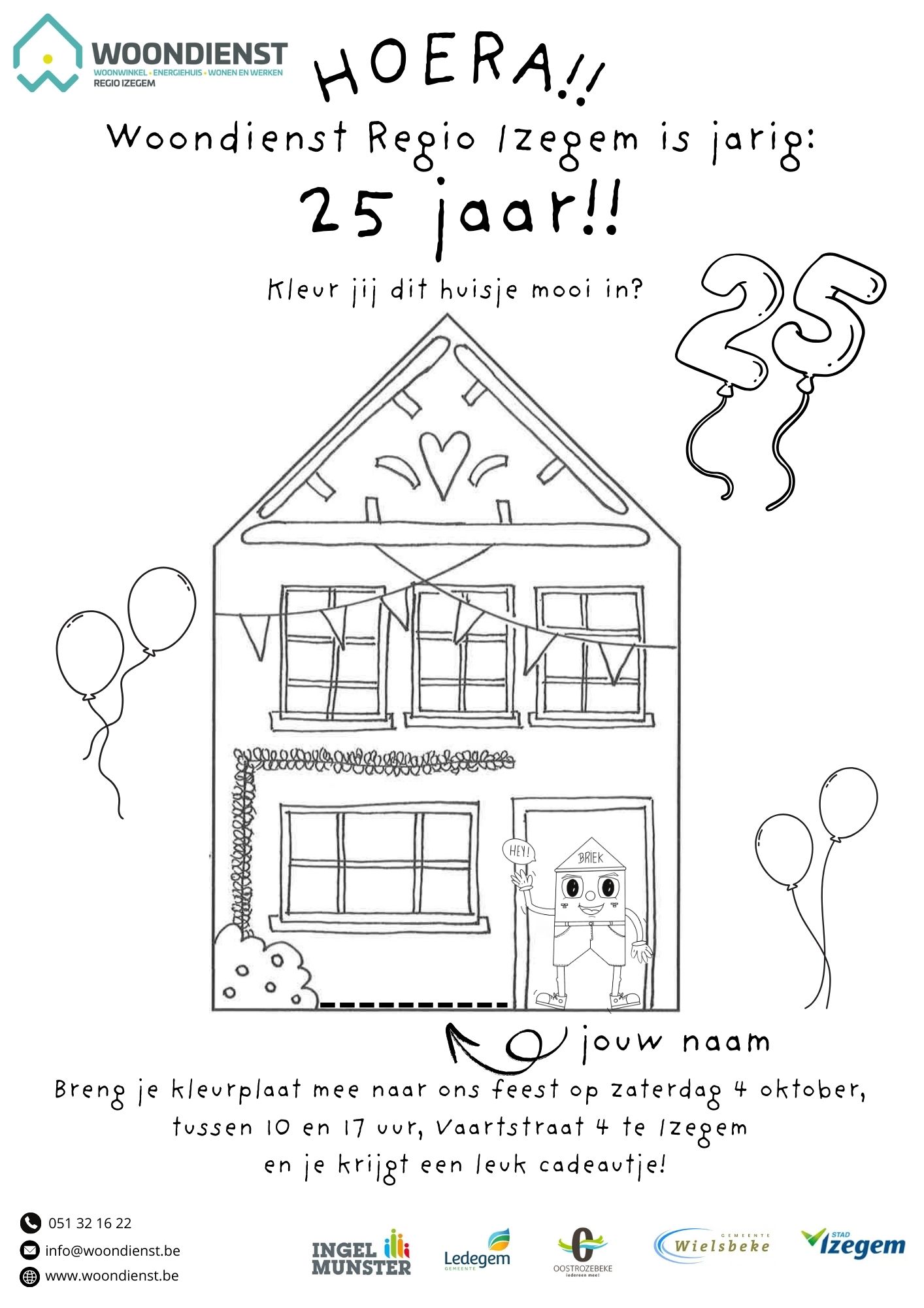 Woondienst Regio Izegem bestaat 25 jaar en dat vieren we graag samen met jou! Op zaterdag 4 oktober ben je welkom van 10u tot 17u in de Vaartstraat 4, Izegem voor een dag vol activiteiten.